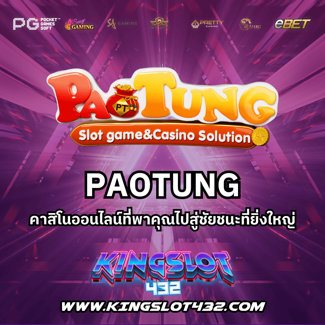 สำหรับผู้ที่กำลังมองหาความสนุกสนานและโอกาสในการทำเงิน PAOTUNG คือแพลตฟอร์มที่คุณไม่ควรมองข้าม ที่นี่คุณจะได้พบกับเกมออนไลน์และคาสิโนออนไลน์ที่มีความหลากหลายและน่าตื่นเต้น ความรวยและความสำเร็จอยู่ไม่ไกลเกินเอื้อมด้วยสล็อตออนไลน์ที่มีรางวัลใหญ่มากมาย ทุกครั้งที่คุณเล่น คุณจะรู้สึกเหมือนกำลังเดินทางสู่ความฝันที่สามารถกลายเป็นจริงได้ โปรโมชั่น KINGSLOT 828 ที่น่าสนใจจะทำให้คุณมีโอกาสได้รับรางวัลมากยิ่งขึ้น และทำให้ทุกๆ การเล่นเป็นประสบการณ์ที่ไม่เหมือนใคร สมัครได้ที่นี้